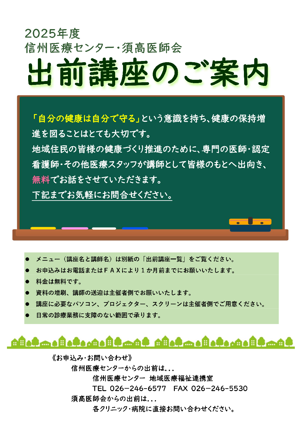 - 講座費用は無料です(講師の送迎は主催者側でお願いいたします)